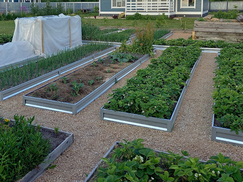 Посмотрите, как выглядят грядки и клумбы на участках.